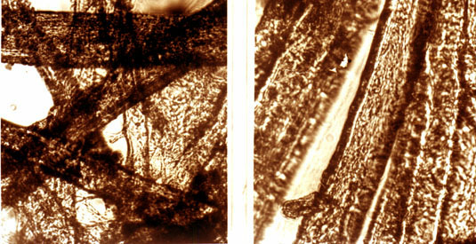 Хаотично разположени влакна в хартия формувана с обикновена вода и подредени
