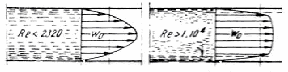 В ляво - нулева скорост на пристенния слой поради триенето на течността, в