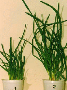 Зелен лук поливан с чешмяна вода 1 и с обработена в МагСтатор™ вода 2