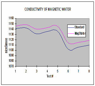 Електропроводимост на вода - повишаване след обработката и в МагСтатор™